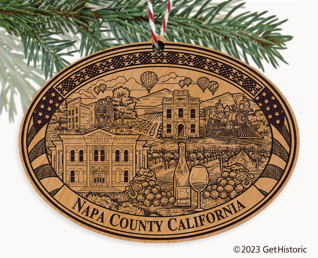 Celebrate the history of Napa County with our exclusive Natural Wood Engraved Ornament. One side will feature unique artwork telling the story of your county's history. The other side features a FREE personalization to create a cherished keepsake. If you choose not to personalize, our Get Historic logo and scrollwork will be engraved.