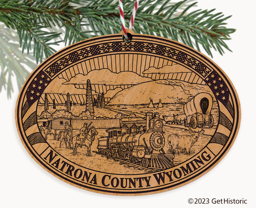 Natrona County Wyoming Natural Wood Engraved Ornament