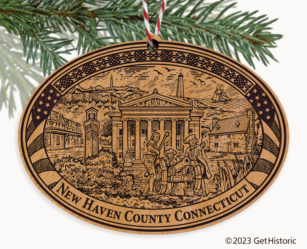 New Haven County Connecticut Natural Wood Engraved Ornament