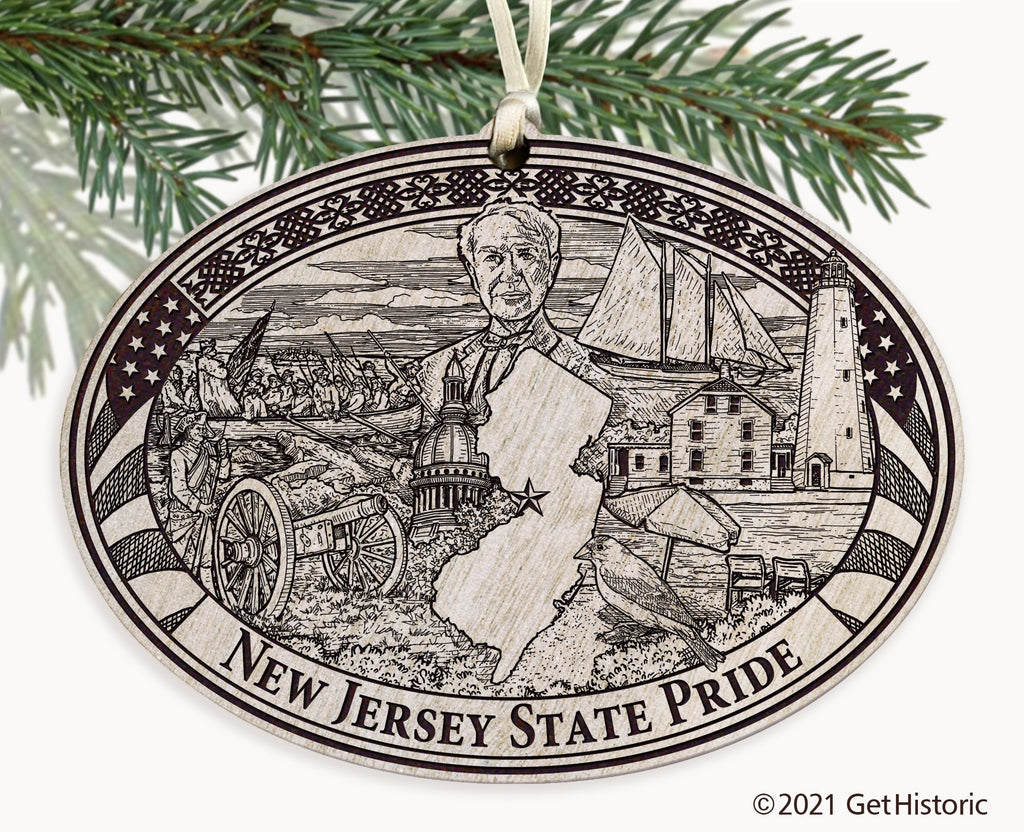 Celebrate the history of New Jersey with our exclusive Personalized Wood Engraved Ornament. One side will feature unique artwork telling the story of your state's history. The other side will be personalized with your own wording to create a cherished keepsake. If you choose not to personalize, our Get Historic logo and scrollwork will be engraved.
