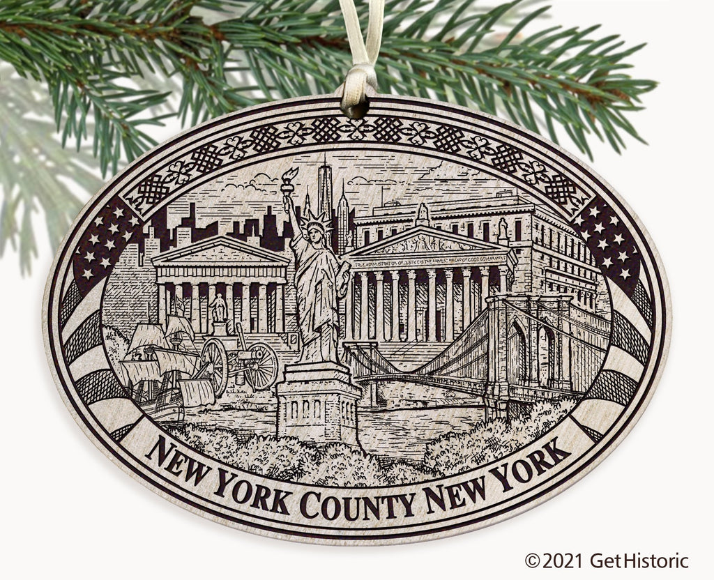 Celebrate the history of New York County with our exclusive Personalized Wood Engraved Ornament. One side will feature unique artwork telling the story of your county's history. The other side will be personalized with your own wording to create a cherished keepsake. If you choose not to personalize, our Get Historic logo and scrollwork will be engraved.