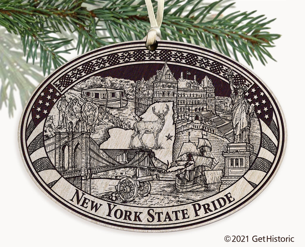 Celebrate the history of New York with our exclusive Personalized Wood Engraved Ornament. One side will feature unique artwork telling the story of your state's history. The other side will be personalized with your own wording to create a cherished keepsake. If you choose not to personalize, our Get Historic logo and scrollwork will be engraved.