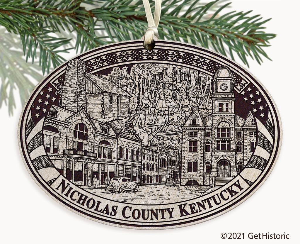 Nicholas County Kentucky Whitewash Wood Engraved Ornament