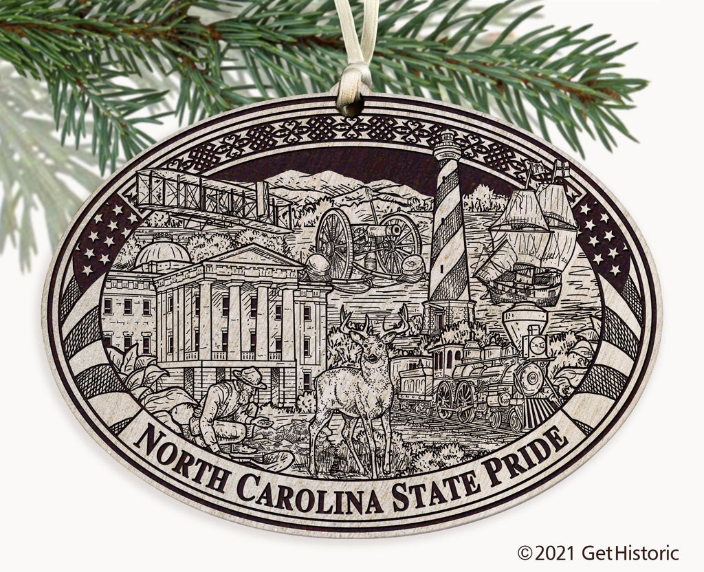 Celebrate the history of North Carolina with our exclusive Personalized Wood Engraved Ornament. One side will feature unique artwork telling the story of your state's history. The other side will be personalized with your own wording to create a cherished keepsake. If you choose not to personalize, our Get Historic logo and scrollwork will be engraved.