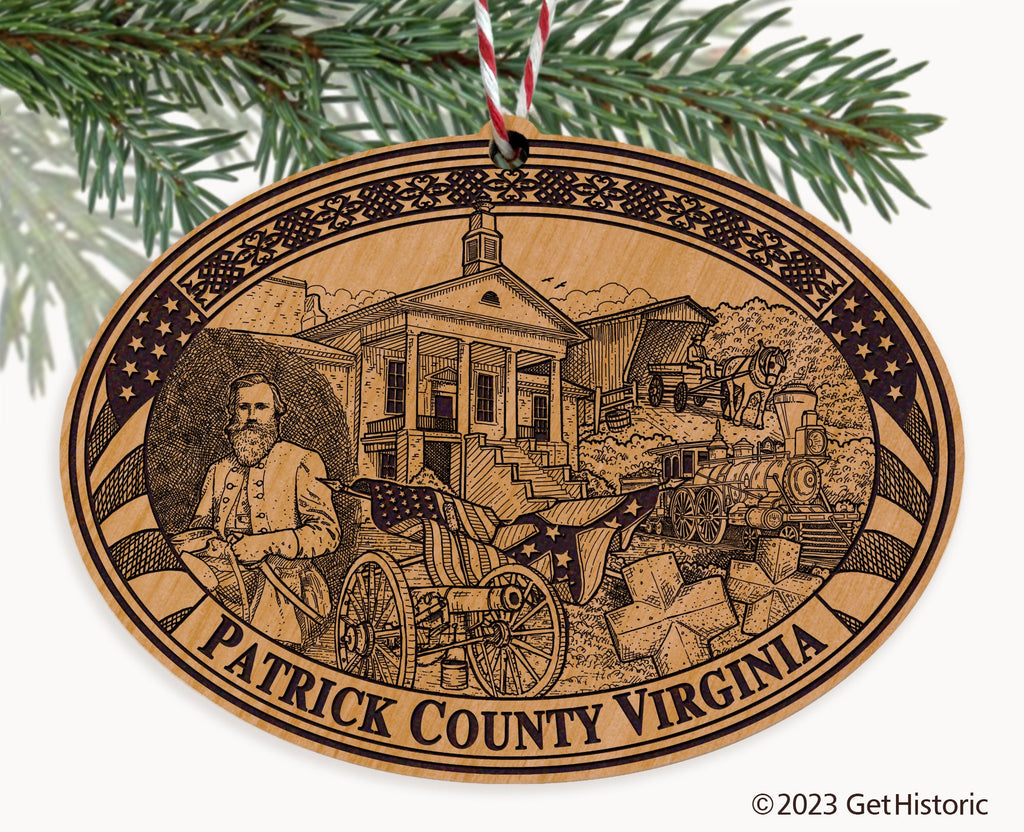 Celebrate the history of Patrick County with our exclusive Natural Wood Engraved Ornament. One side will feature unique artwork telling the story of your county's history. The other side features a FREE personalization to create a cherished keepsake. If you choose not to personalize, our Get Historic logo and scrollwork will be engraved.