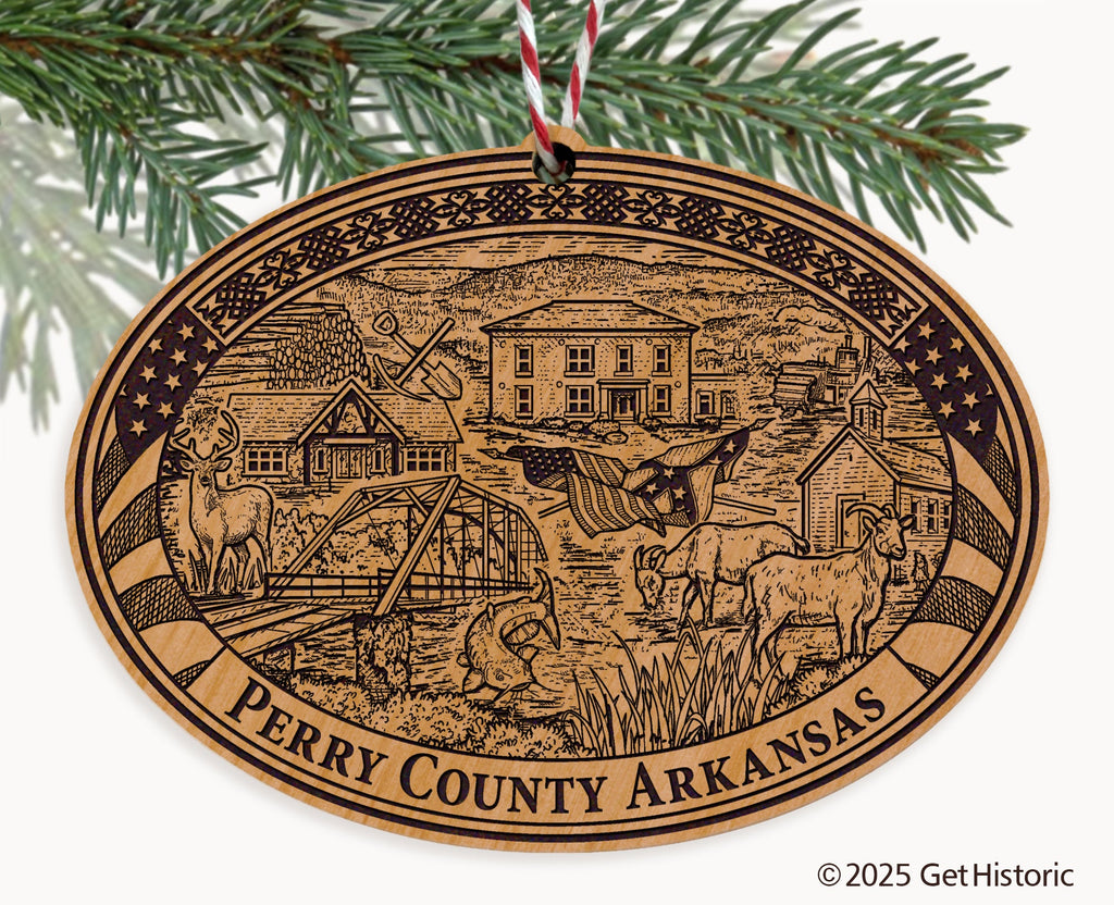 Celebrate the history of Perry County with our exclusive Natural Wood Engraved Ornament. One side will feature unique artwork telling the story of your county's history. The other side features a FREE personalization to create a cherished keepsake. If you choose not to personalize, our Get Historic logo and scrollwork will be engraved.