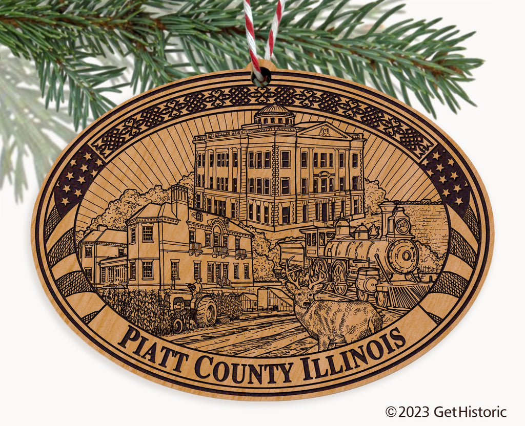 Piatt County Illinois Natural Wood Engraved Ornament