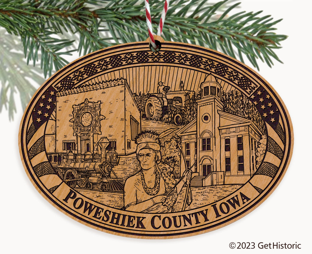 Poweshiek County Iowa Natural Wood Engraved Ornament