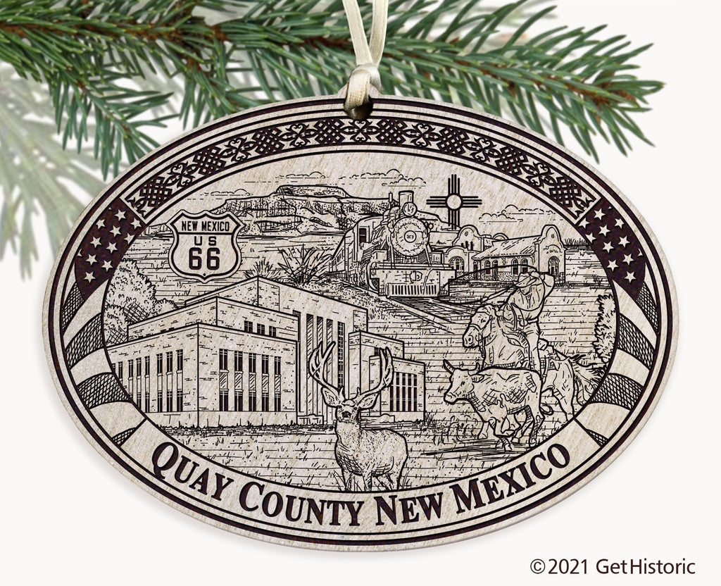 Quay County New Mexico Whitewash Wood Engraved Ornament