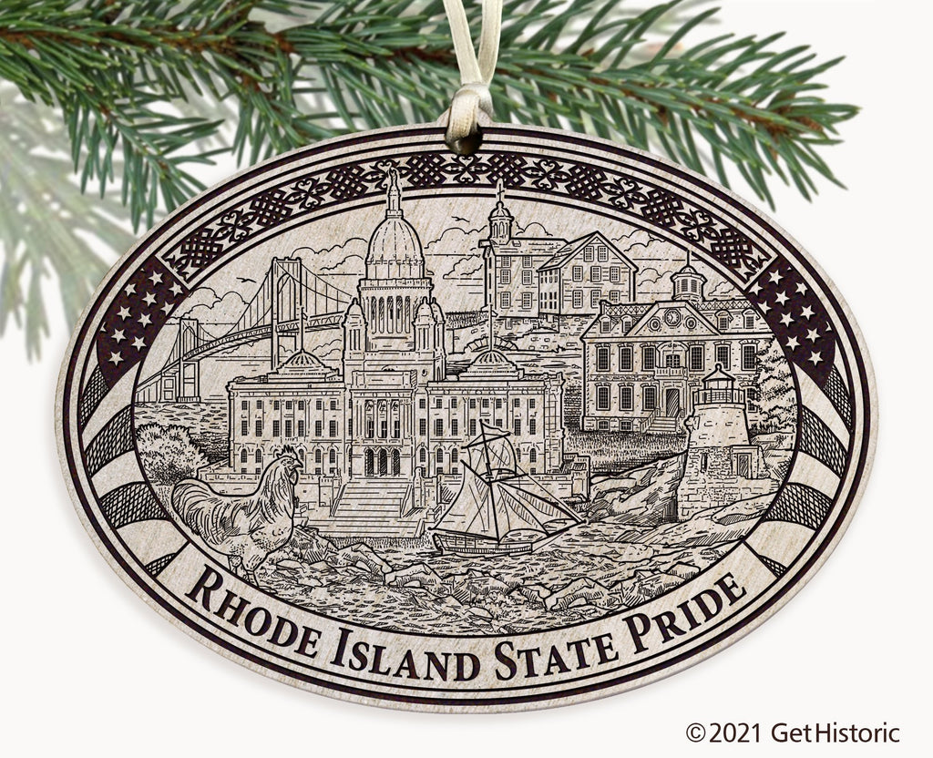 Celebrate the history of Rhode Island with our exclusive Personalized Wood Engraved Ornament. One side will feature unique artwork telling the story of your state's history. The other side will be personalized with your own wording to create a cherished keepsake. If you choose not to personalize, our Get Historic logo and scrollwork will be engraved.