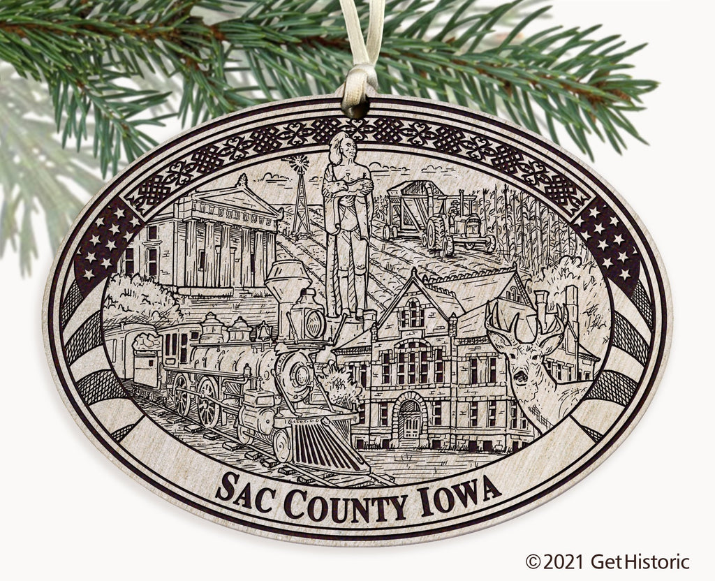 Sac County Iowa Whitewash Wood Engraved Ornament