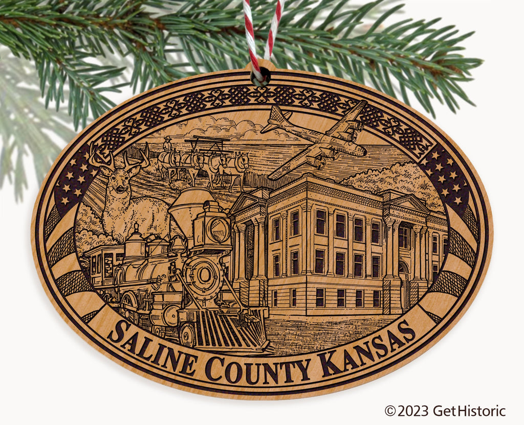 Celebrate the history of Saline County with our exclusive Natural Wood Engraved Ornament. One side will feature unique artwork telling the story of your county's history. The other side features a FREE personalization to create a cherished keepsake. If you choose not to personalize, our Get Historic logo and scrollwork will be engraved.