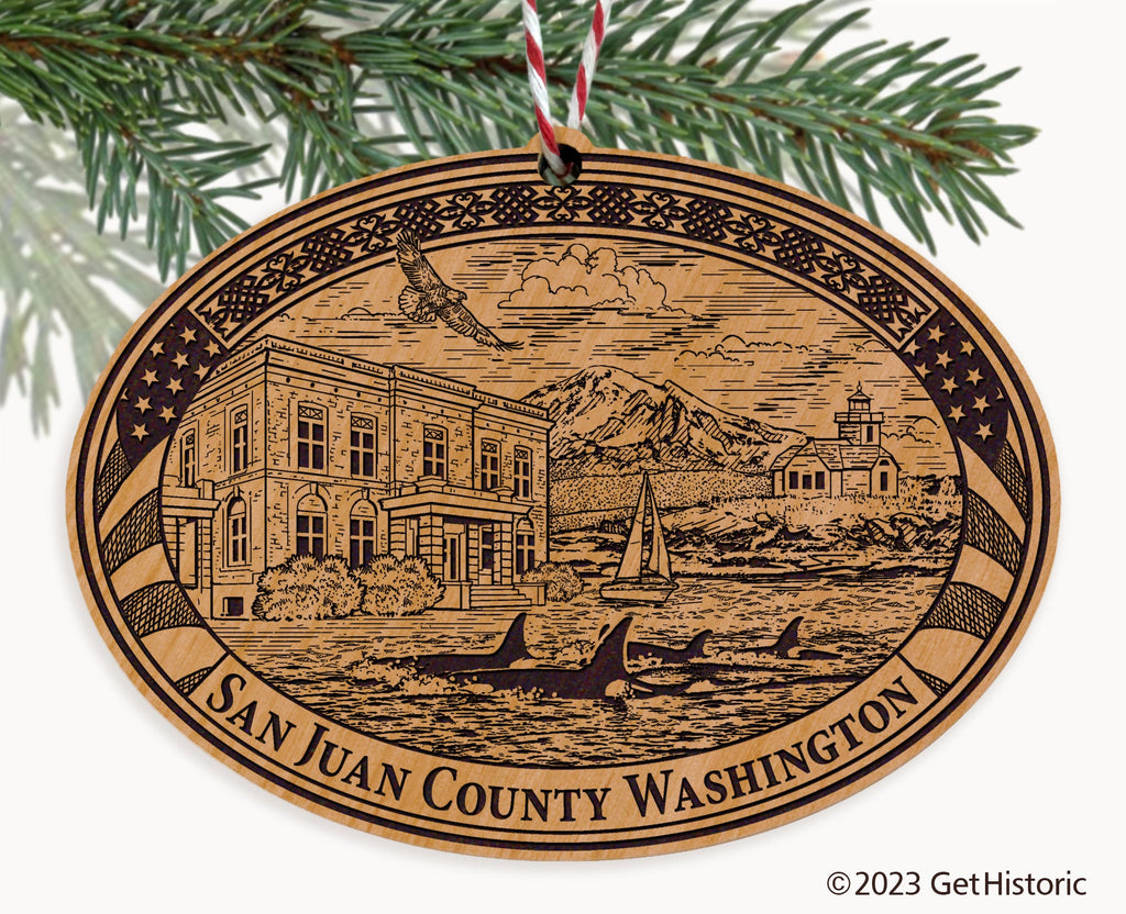 San Juan County Washington Natural Wood Engraved Ornament