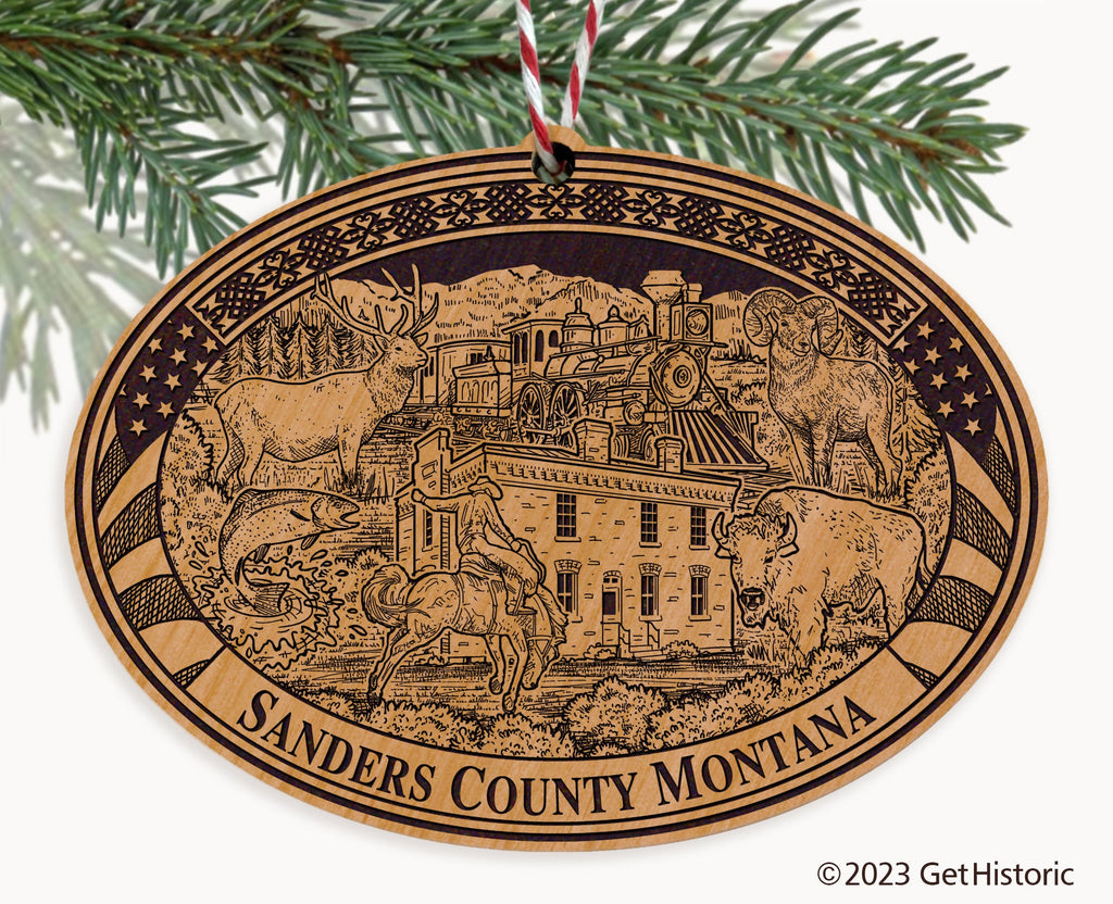 Celebrate the history of Sanders County with our exclusive Natural Wood Engraved Ornament. One side will feature unique artwork telling the story of your county's history. The other side features a FREE personalization to create a cherished keepsake. If you choose not to personalize, our Get Historic logo and scrollwork will be engraved.