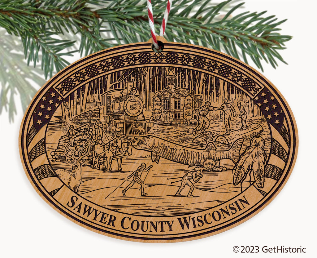 Sawyer County Wisconsin Natural Wood Engraved Ornament