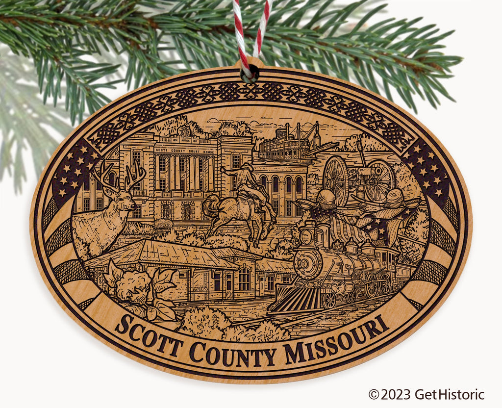 Celebrate the history of Scott County Missouri with our exclusive Natural Wood Engraved Ornament. One side will feature unique artwork telling the story of your county's history. The other side features a FREE personalization to create a cherished keepsake. If you choose not to personalize, our Get Historic logo and scrollwork will be engraved.