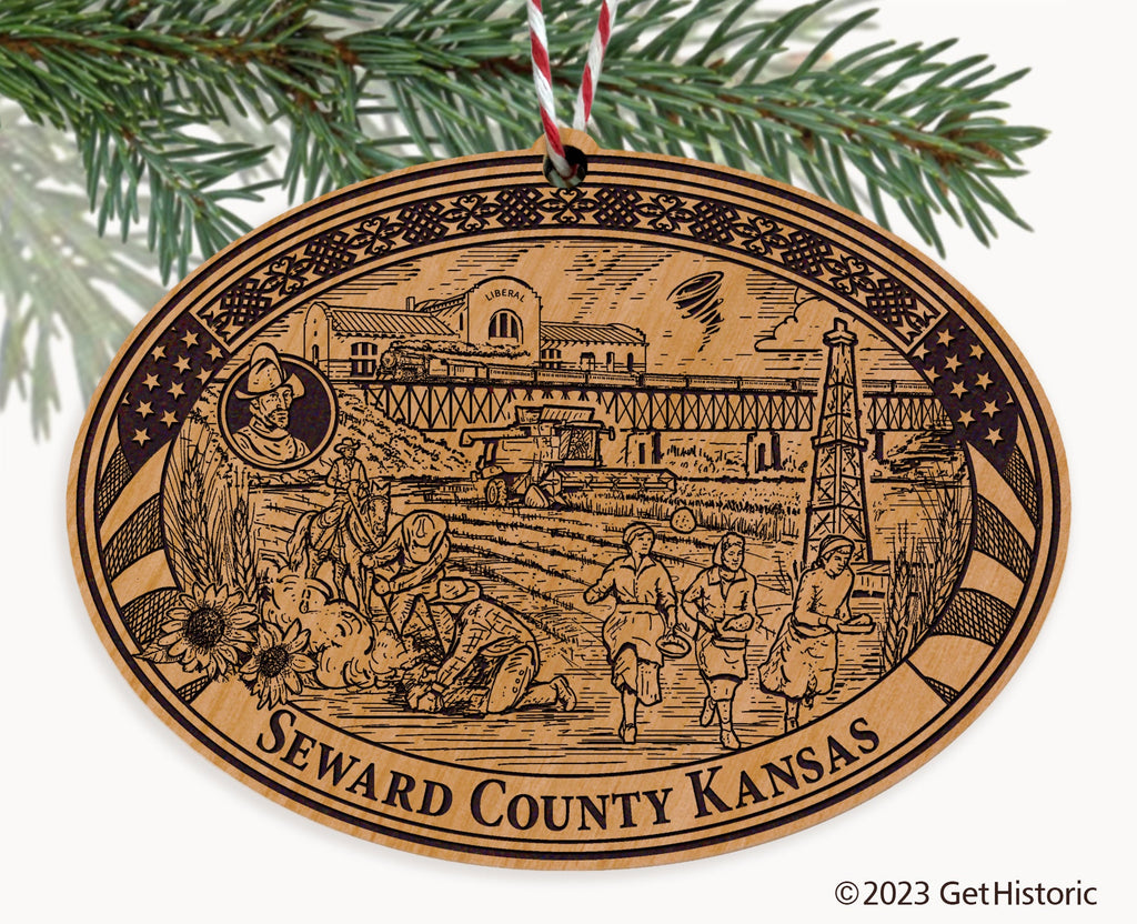 Celebrate the history of Seward County with our exclusive Natural Wood Engraved Ornament. One side will feature unique artwork telling the story of your county's history. The other side features a FREE personalization to create a cherished keepsake. If you choose not to personalize, our Get Historic logo and scrollwork will be engraved.