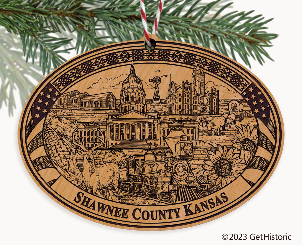 Shawnee County Kansas Natural Wood Engraved Ornament
