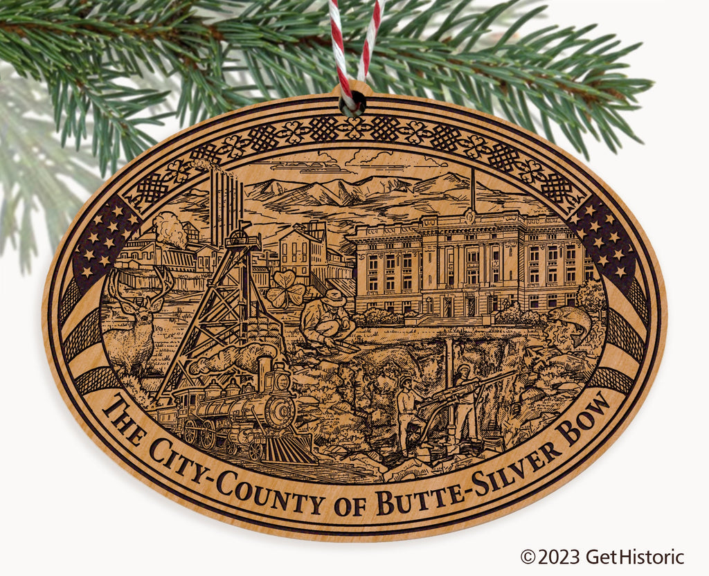 Silver Bow County Montana Natural Wood Engraved Ornament