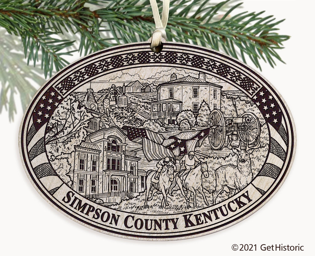 Simpson County Kentucky Whitewash Wood Engraved Ornament