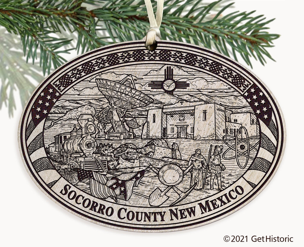 Socorro County New Mexico Whitewash Wood Engraved Ornament