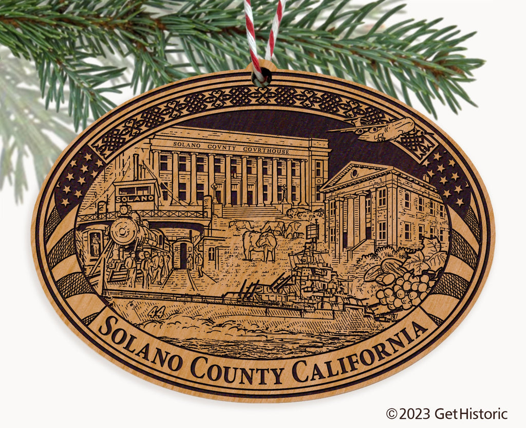 Celebrate the history of Solano County with our exclusive Natural Wood Engraved Ornament. One side will feature unique artwork telling the story of your county's history. The other side features a FREE personalization to create a cherished keepsake. If you choose not to personalize, our Get Historic logo and scrollwork will be engraved.