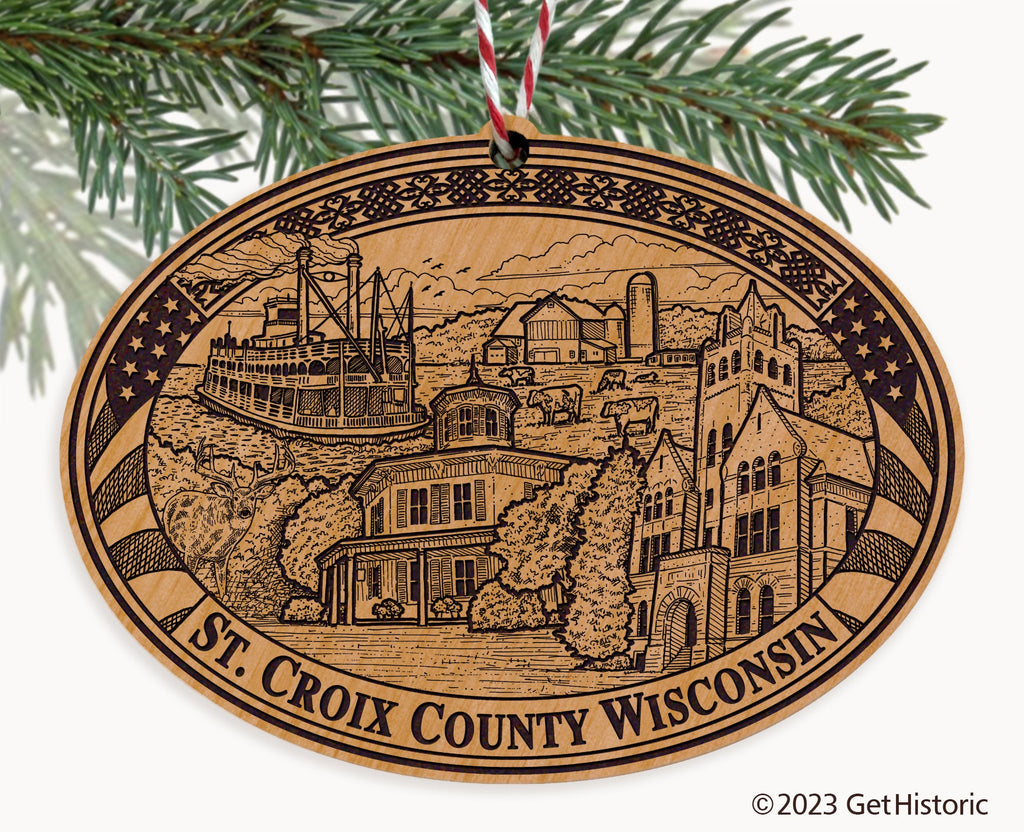 St. Croix County Wisconsin Natural Wood Engraved Ornament
