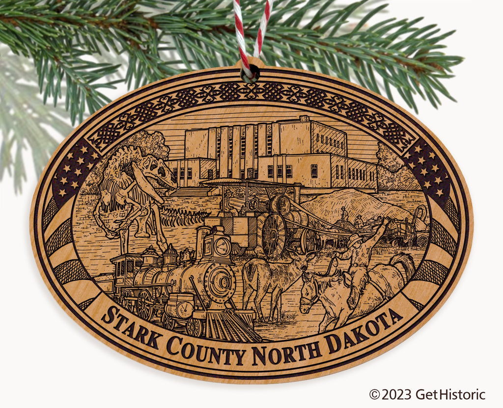 Celebrate the history of Stark County with our exclusive Natural Wood Engraved Ornament. One side will feature unique artwork telling the story of your county's history. The other side features a FREE personalization to create a cherished keepsake. If you choose not to personalize, our Get Historic logo and scrollwork will be engraved.