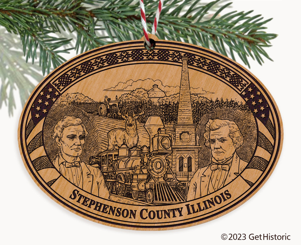 Stephenson County Illinois Natural Wood Engraved Ornament