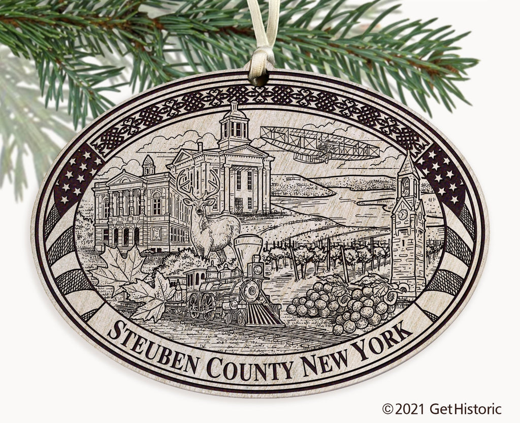 Celebrate the history of Steuben County with our exclusive Personalized Wood Engraved Ornament. One side will feature unique artwork telling the story of your county's history. The other side will be personalized with your own wording to create a cherished keepsake. If you choose not to personalize, our Get Historic logo and scrollwork will be engraved.