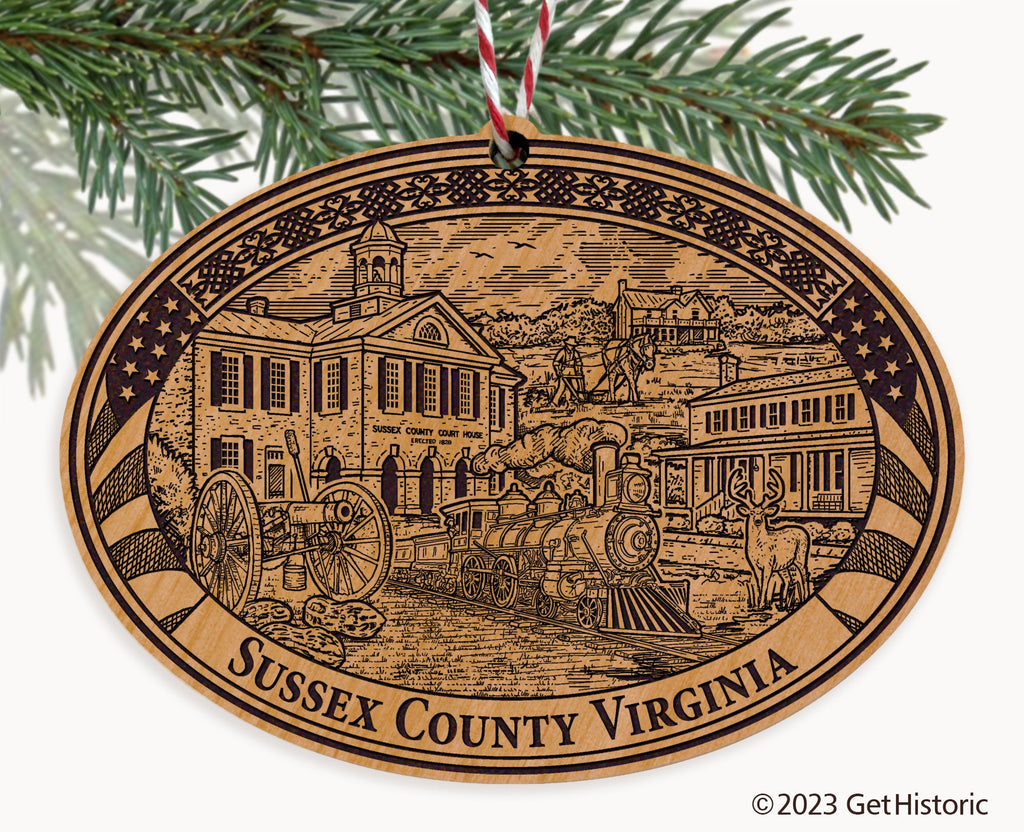Celebrate the history of Sussex County with our exclusive Natural Wood Engraved Ornament. One side will feature unique artwork telling the story of your county's history. The other side features a FREE personalization to create a cherished keepsake. If you choose not to personalize, our Get Historic logo and scrollwork will be engraved.