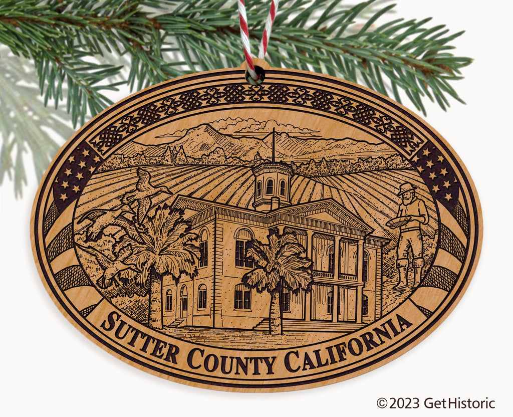 Sutter County California Natural Wood Engraved Ornament