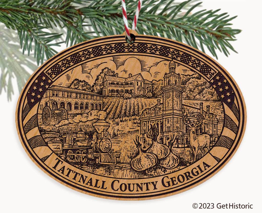 Tattnall County Georgia Natural Wood Engraved Ornament