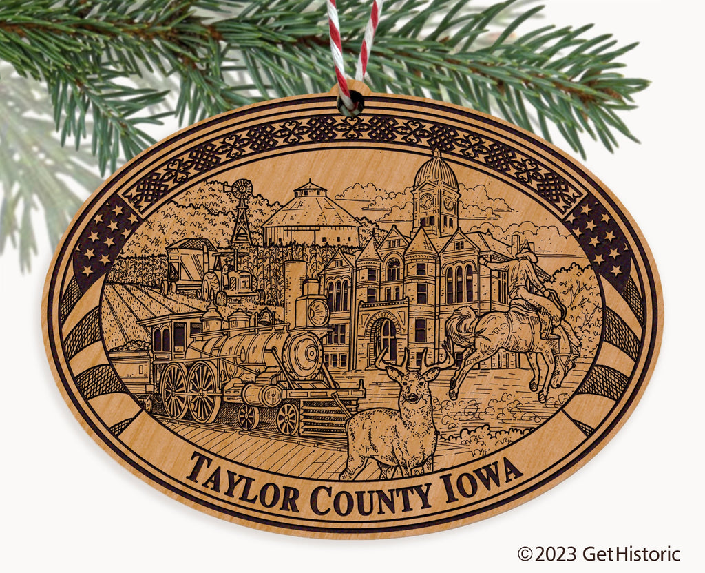Celebrate the history of Taylor County with our exclusive Natural Wood Engraved Ornament. One side will feature unique artwork telling the story of your county's history. The other side features a FREE personalization to create a cherished keepsake. If you choose not to personalize, our Get Historic logo and scrollwork will be engraved.