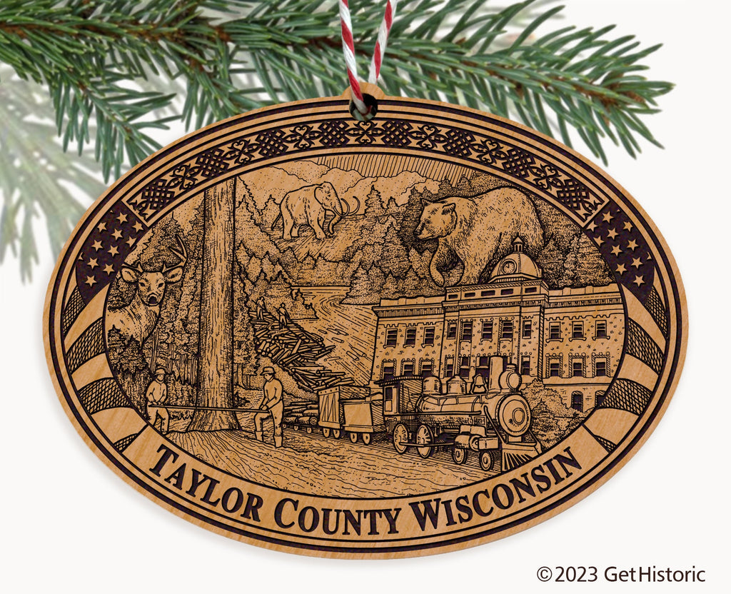 Taylor County Wisconsin Natural Wood Engraved Ornament