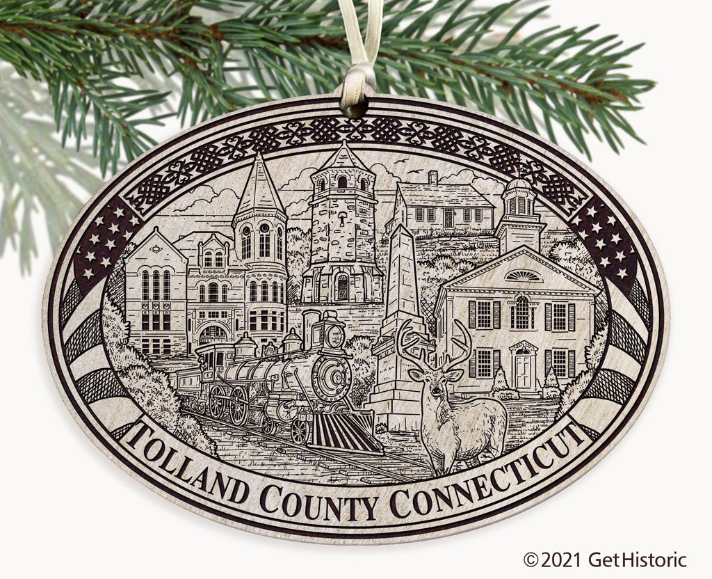Tolland County Connecticut Whitewash Wood Engraved Ornament