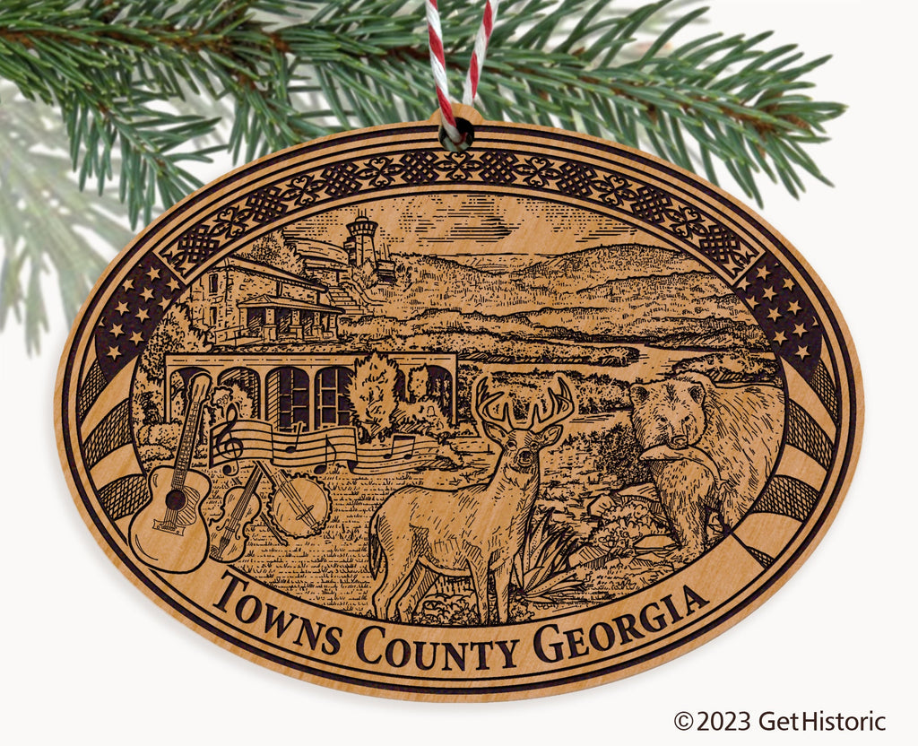 Towns County Georgia Natural Wood Engraved Ornament