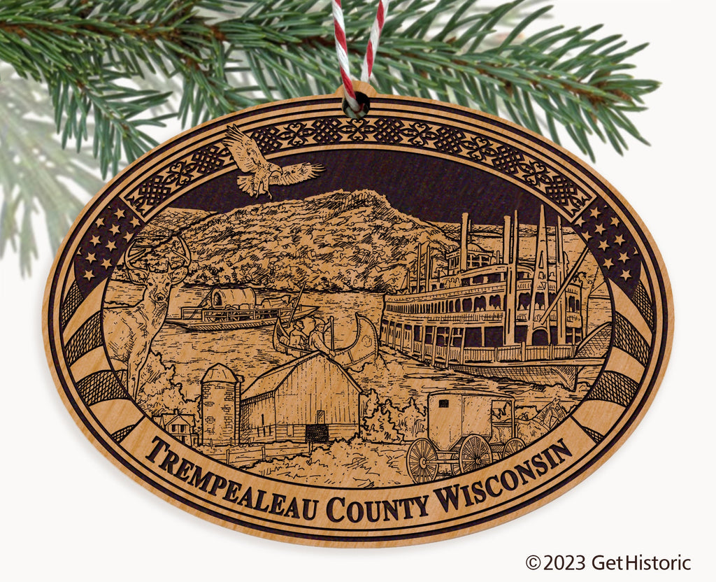 Trempealeau County Wisconsin Natural Wood Engraved Ornament