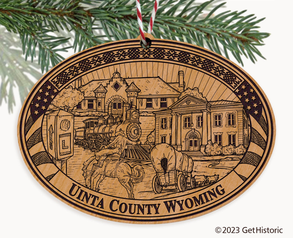 Uinta County Wyoming Natural Wood Engraved Ornament