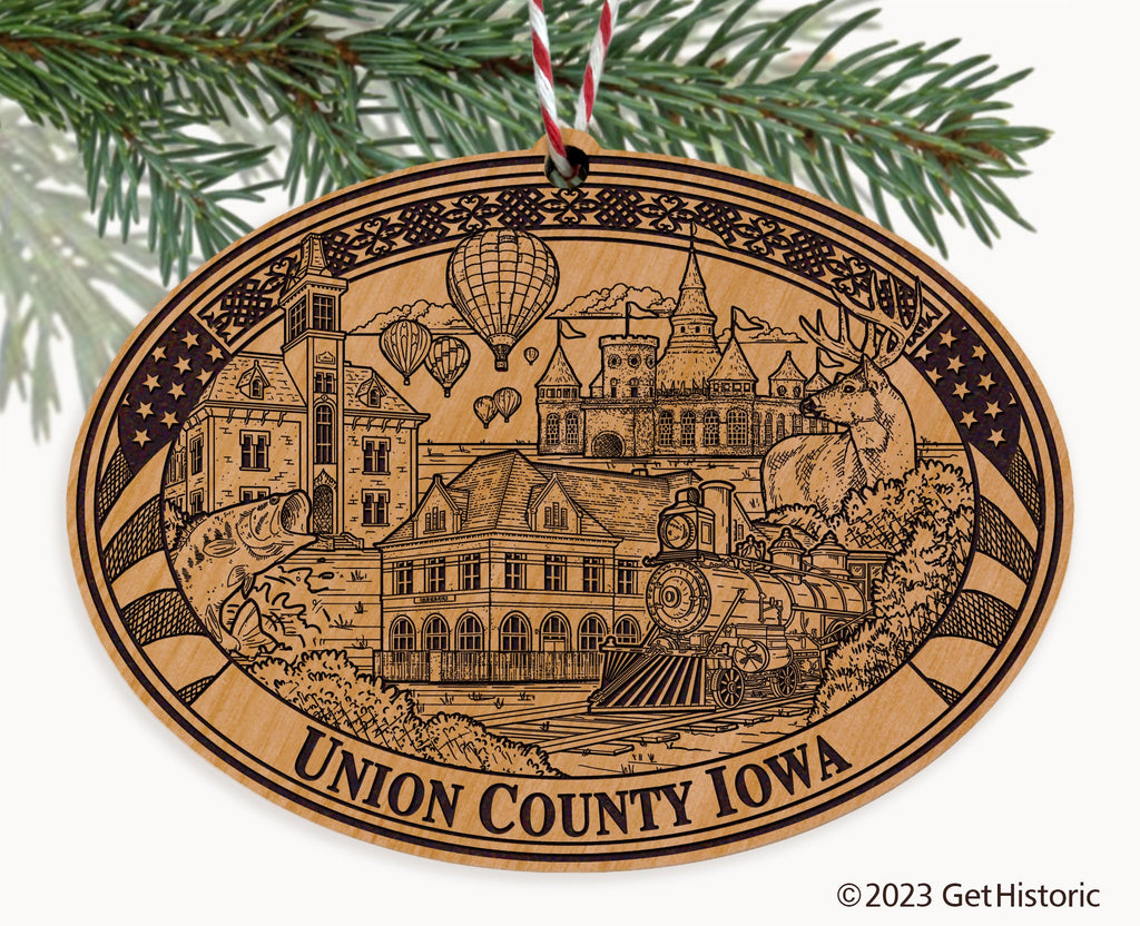 Celebrate the history of Union County with our exclusive Natural Wood Engraved Ornament. One side will feature unique artwork telling the story of your county's history. The other side features a FREE personalization to create a cherished keepsake. If you choose not to personalize, our Get Historic logo and scrollwork will be engraved.