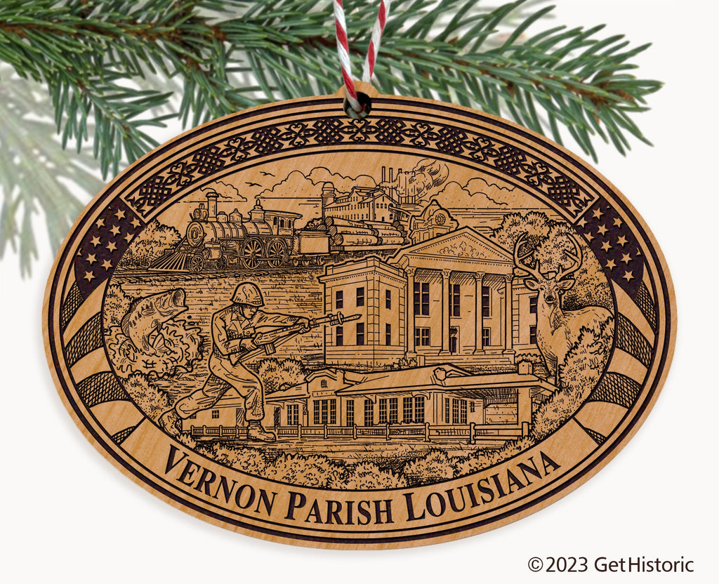 Vernon Parish Louisiana Natural Wood Engraved Ornament