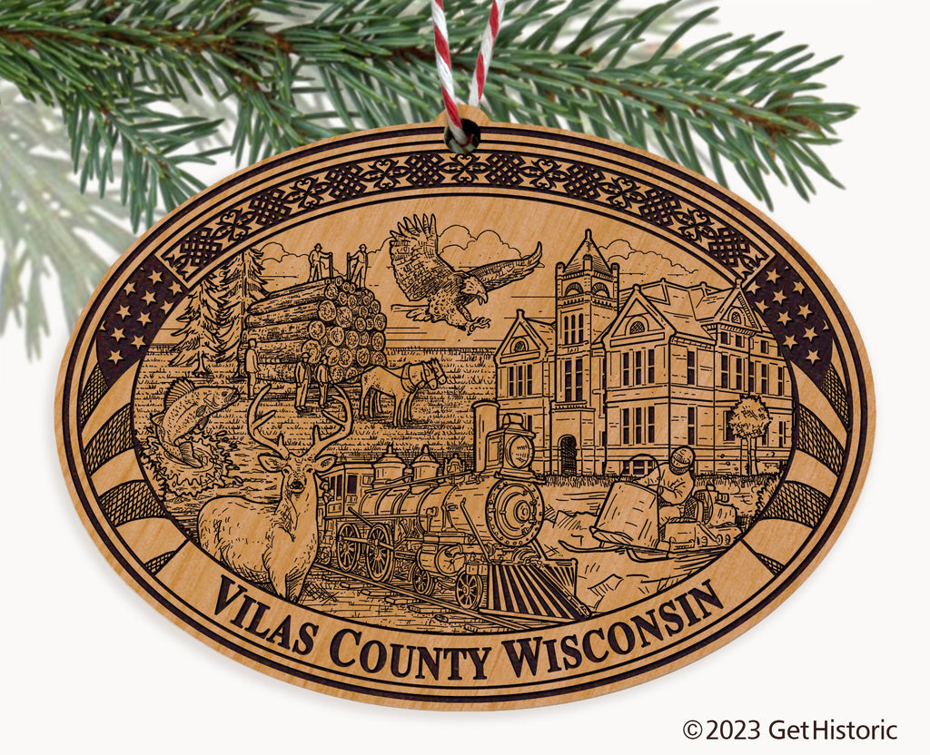 Vilas County Wisconsin Natural Wood Engraved Ornament