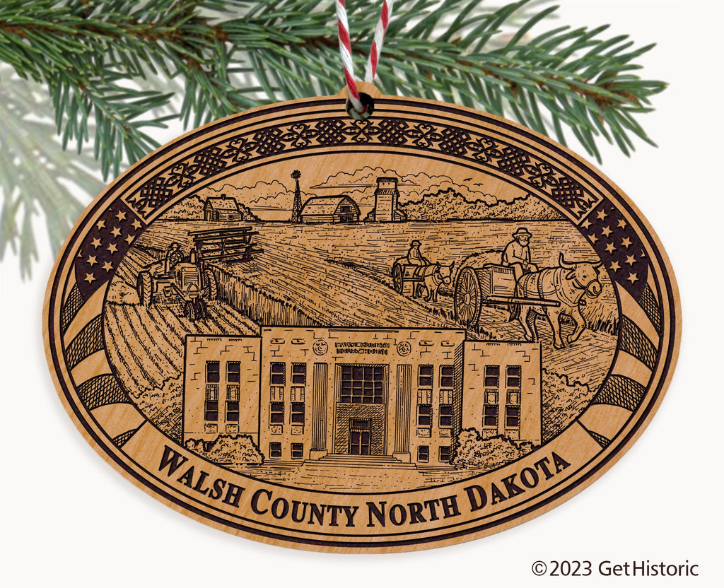 Walsh County North Dakota Natural Wood Engraved Ornament