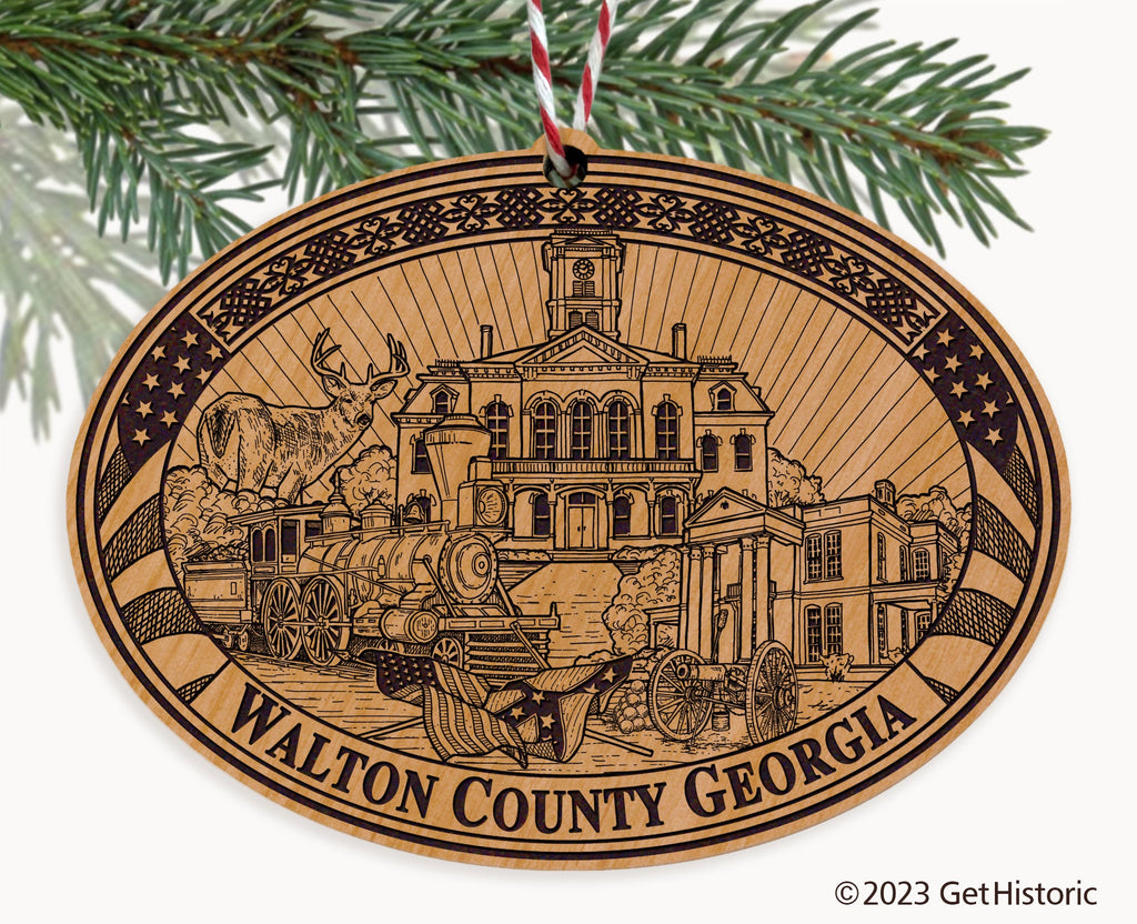 Celebrate the history of Walton County Georgia with our exclusive Natural Wood Engraved Ornament. One side will feature unique artwork telling the story of your county's history. The other side features a FREE personalization to create a cherished keepsake. If you choose not to personalize, our Get Historic logo and scrollwork will be engraved.
