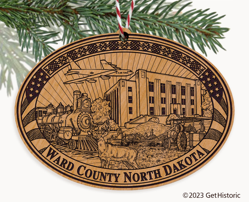 Celebrate the history of Ward County with our exclusive Natural Wood Engraved Ornament. One side will feature unique artwork telling the story of your county's history. The other side features a FREE personalization to create a cherished keepsake. If you choose not to personalize, our Get Historic logo and scrollwork will be engraved.