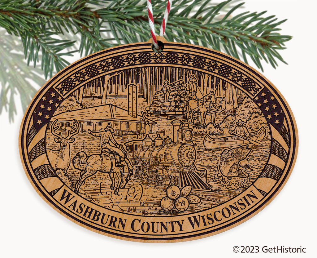 Washburn County Wisconsin Natural Wood Engraved Ornament