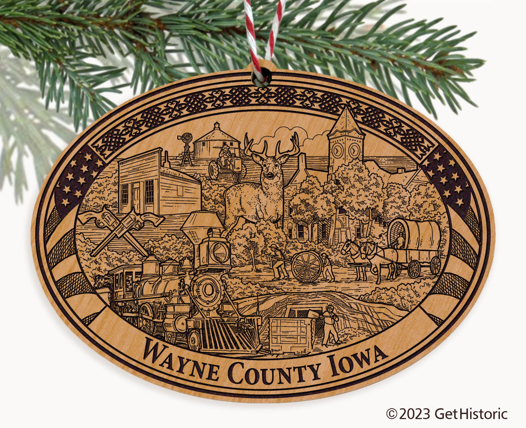 Wayne County Iowa Natural Wood Engraved Ornament