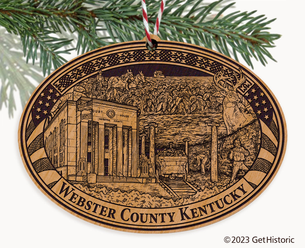 Celebrate the history of Webster County with our exclusive Natural Wood Engraved Ornament. One side will feature unique artwork telling the story of your county's history. The other side features a FREE personalization to create a cherished keepsake. If you choose not to personalize, our Get Historic logo and scrollwork will be engraved.