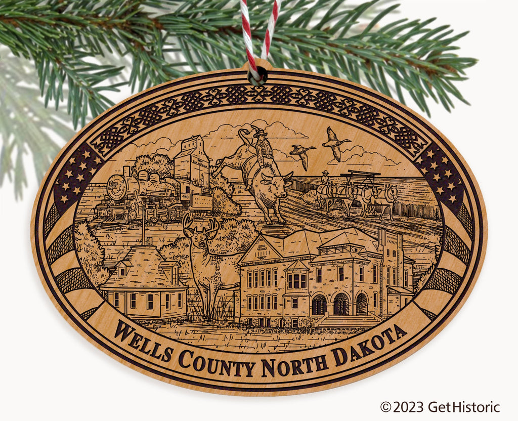 Celebrate the history of Wells County with our exclusive Natural Wood Engraved Ornament. One side will feature unique artwork telling the story of your county's history. The other side features a FREE personalization to create a cherished keepsake. If you choose not to personalize, our Get Historic logo and scrollwork will be engraved.
