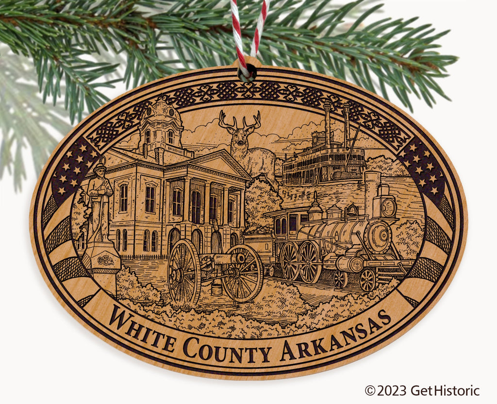 Celebrate the history of White County Arkansas with our exclusive Natural Wood Engraved Ornament. One side will feature unique artwork telling the story of your county's history. The other side features a FREE personalization to create a cherished keepsake. If you choose not to personalize, our Get Historic logo and scrollwork will be engraved.
